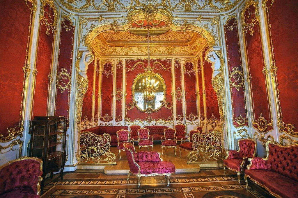 Позже архитектор Гаральд Боссе спроектировал интерьер в стиле рококо с позолоченными растительными орнаментами, малиновыми стенами и мебелью. Стены украшены фигурами кариатид и зеркалами. Интерьер будуара сохранился до наших дней практически в первозданном виде.