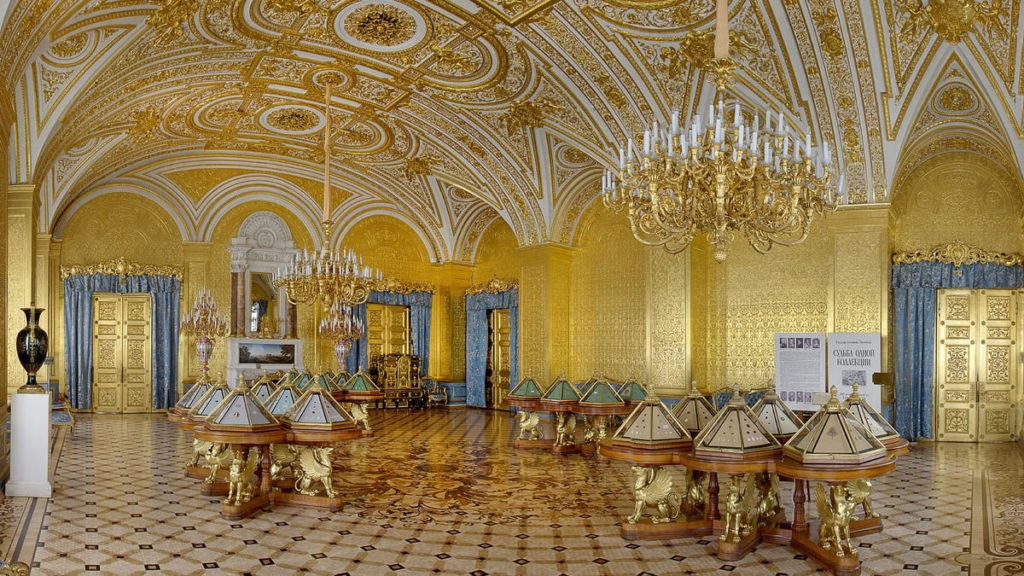 Георгиевский, или Большой тронный, зал — главное церемониальное помещение дворца. Здесь российские правители давали балы, проводили обеды, принимали послов и монарших особ.