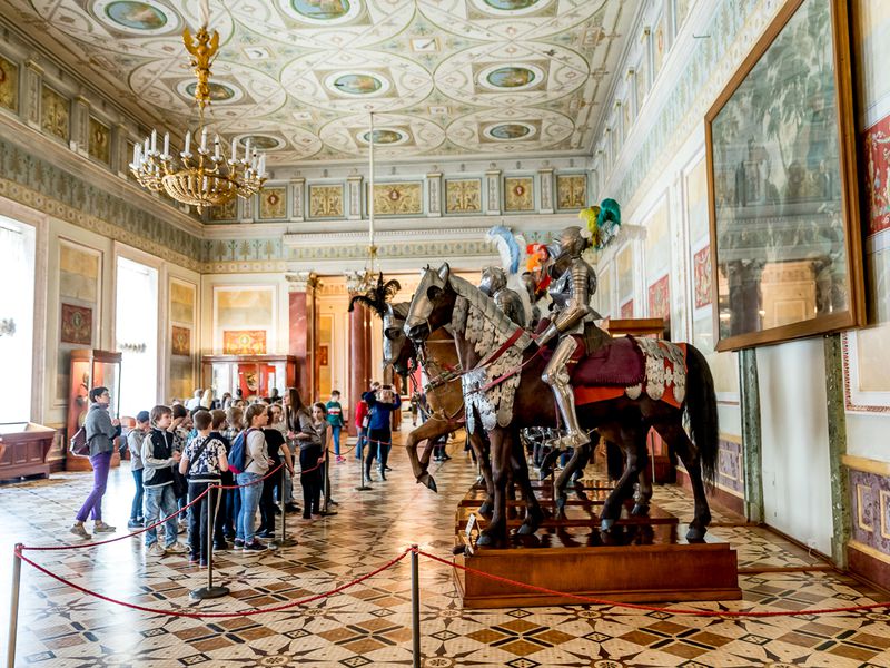 Экскурсовод расскажет том, как проходили официальные церемонии и парадные балы, как принимали послов, какие секреты хранили гости царской семьи и их приближённые. Вы окунётесь в прекрасную атмосферу императорской резиденции, увидите роскошные интерьеры и обстановку комнат и залов, полюбуетесь полотнами Рафаэля, Микеланджело, Леонардо Да Винчи и Рембрандта.