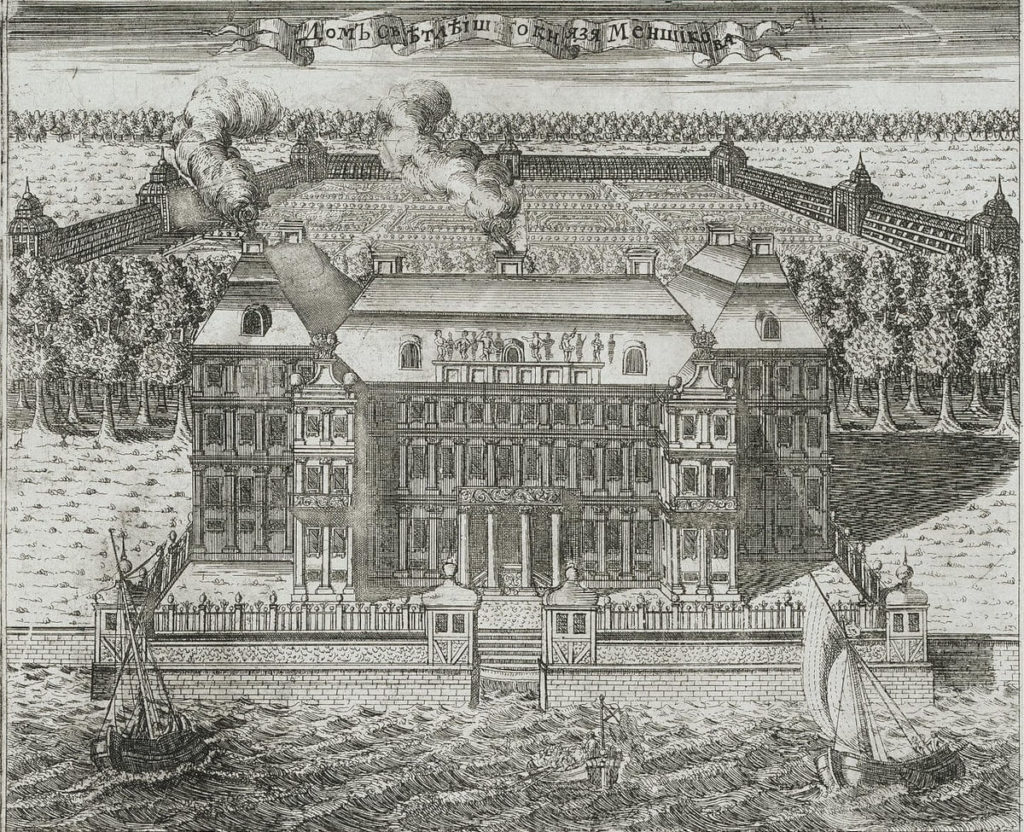 История этого места началась во времена Северной войны, когда Пётр I подарил Меншикову Васильевский остров. В 1703 году заложили строительство первой резиденции. Тогда она была деревянной и находилась в глубине участка, посреди большого сада с сетью дорожек, лабиринтов и скульптур.