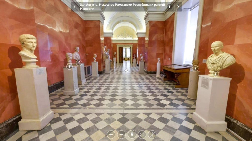 Интерактивная прогулка по залам Эрмитажа в Санкт-Петербурге не просто интересная, но и информативная ― многие экспонаты, представленные в панорамах, имеют подробное описание.