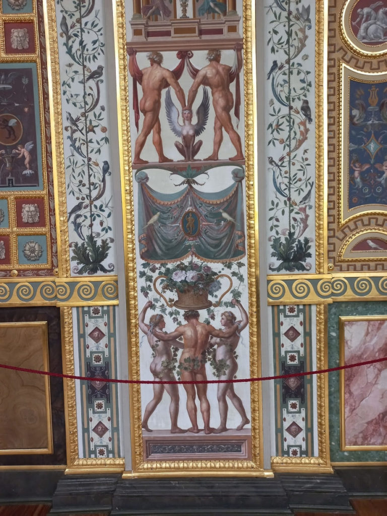 Осмотрев залы, посвящённые искусству Италии (№ 207-213), в том числе два зала Леонардо да Винчи, вы окажетесь в зале итальянского ренессансного искусства XVI века. По-другому он называется залом маньеризма. Отсюда вам нужно пройти в Северный кабинет через зал контроля Эрмитажного театра — и вот, вы в Лоджиях Рафаэля.