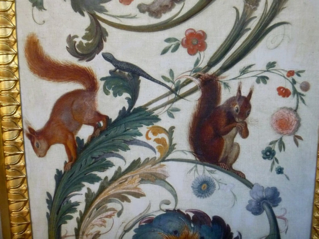 Помимо библейских сюжетов, большая часть стен галереи украшена гротесками — орнаментальными росписями. Эти композиции названы так потому, что впервые их нашли в древнеримских «гротах» — подземных залах дворца императора Нерона. Гротескам Лоджий Рафаэля свойственно органичное смешение мотивов — растительных узоров, изображений животных, сюжетов античной мифологии. Орнаментальные росписи темперой по штукатурке в Северном и Южном кабинетах напоминают гротески в основной части Лоджий Рафаэля.