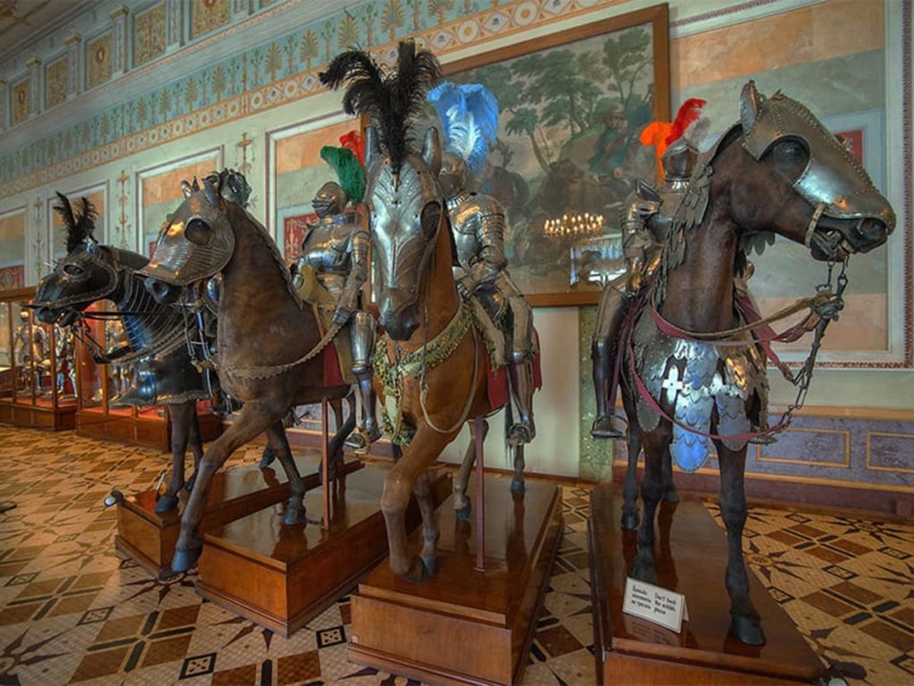Всего здесь собрано более 15 000 редких экспонатов из Германии, Испании и Франции, Италии и других стран. Александр I лично собирал коллекцию и дополнял её трофеями, привезёнными из кавказских походов, русско-турецких кампаний и войн с Персией. Благодаря экспозиции вы сможете проследить эволюцию боевого и оборонительного оружия, увидеть обмундирование воинов разных времён.