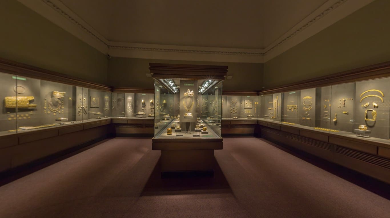 Золотая кладовая в Главном музейном комплексе Эрмитажа — это собрание ценностей, вмещающее тысячи изделий из золота. Прежде всего это Сибирская коллекция Петра Первого — 240 экспонатов, изготовленных евразийскими кочевниками, которые были найдены при раскопках курганов-захоронений к востоку от Урала. Также здесь можно посмотреть на драгоценности из стран Востока, произведения искусства и культуры эпохи Античности, в том числе ювелирные украшения. В Золотую кладовую заходят только вместе с экскурсионной группой численностью до пяти человек включительно. Для детей тоже нужно приобретать билет с экскурсионным обслуживанием. Сеансы проходят каждые полчаса.