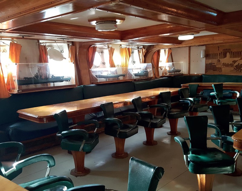 Одно из самых интересных помещений крейсера — кают-компания. Сейчас здесь сохранена такая же обстановка, как и 100 лет назад. До сих пор остались подвесные кровати и столы, на стенах — картины «Авроры», стоящей у Николаевского места, и «Потемкина» на рейде Одессы. Во время экскурсии можно увидеть не только конструкцию корабля, но и условия, в которых жил экипаж.