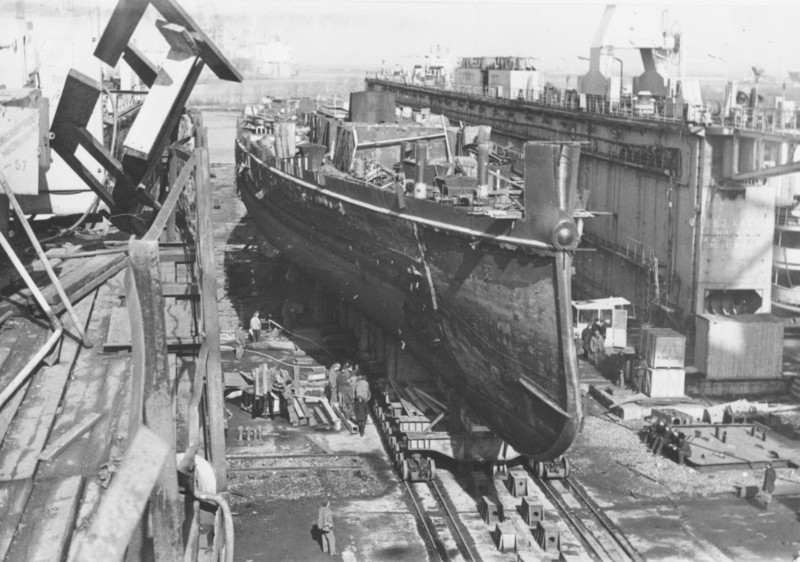 В 1984 году приступили к реконструкции судна. Однако, учитывая масштабы повреждений, времени катастрофически не хватало: требовалось полное восстановление всей нижней части корпуса. С корабля сняли всё оборудование, вооружение, обшивку и разрезали вдоль ватерлинии. Была заново изготовлена подводная часть корпуса, а также заменены на макеты котлы и ряд агрегатов.