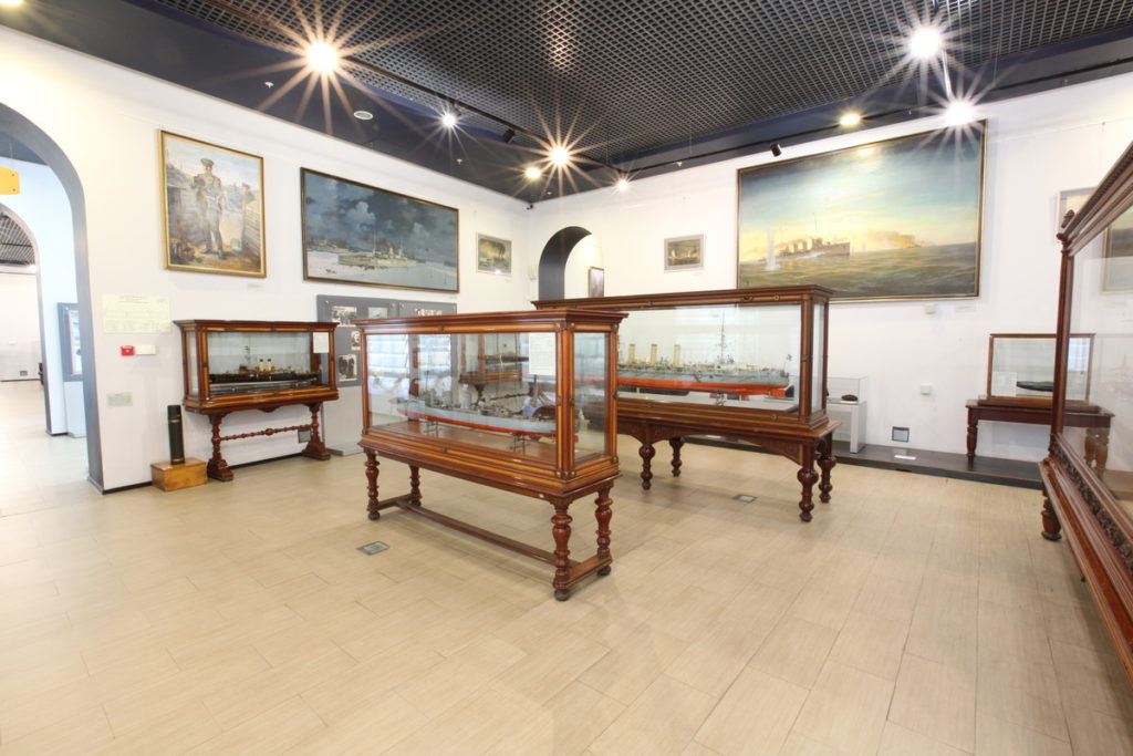- Второй зал. Экспозиция расположена в бывших матросских кубриках. Личные вещи моряков знакомят посетителей с тем, как были выстроены быт и служба на военном судне начала прошлого века.